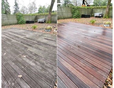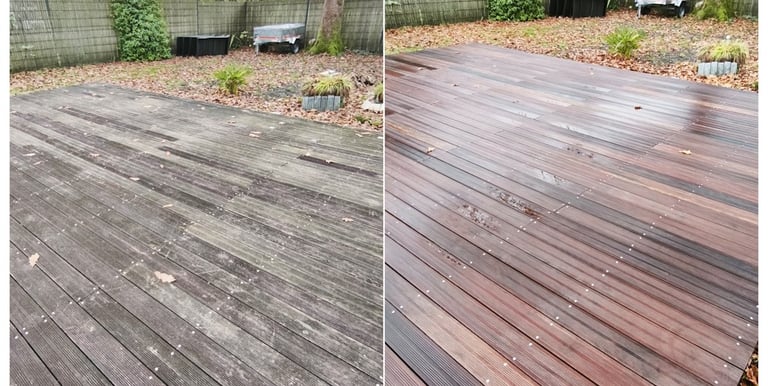 Nettoyage et saturation des terrasses en pin, bois exotique, bambou.